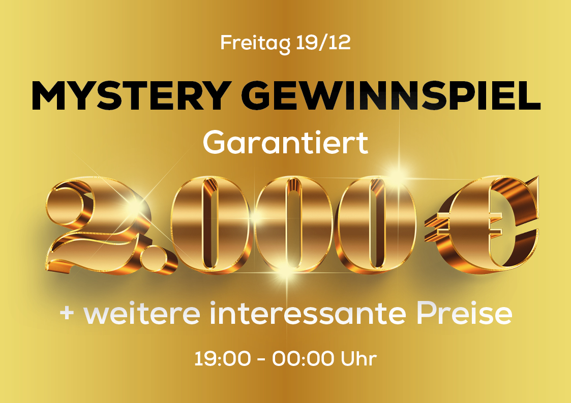 19. 12. – 🎁 MYSTERY GEWINNSPIEL – GARANTIERTER GEWINN 2.000 € + weitere interessante Preise.