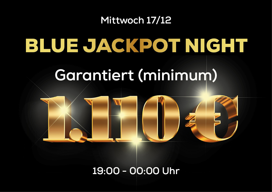 17. 12. – 🎁 BLUE JACKPOT NIGHT – garantierter Gewinn in Mindesthöhe von 1.110 €.