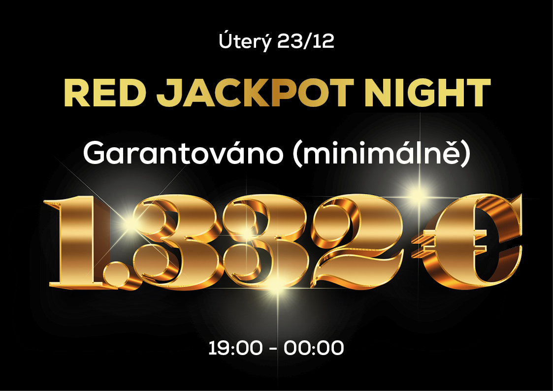 23. 12. – 🎁 RED JACKPOT NIGHT – garantovaná výhra v minimální výši 1.332 €.