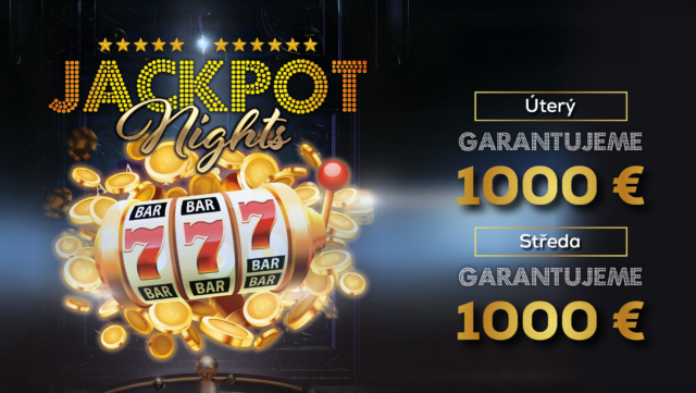 - V úterý 21. 10. a středu 22. 10. 2025 od 20:00 do 01:00 hodin budou padat jackpoty celou noc! Kromě klasických jackpotů rozdáváme během večera navíc RED a BLUE jackpoty celkově za minimálně 1.000 €!