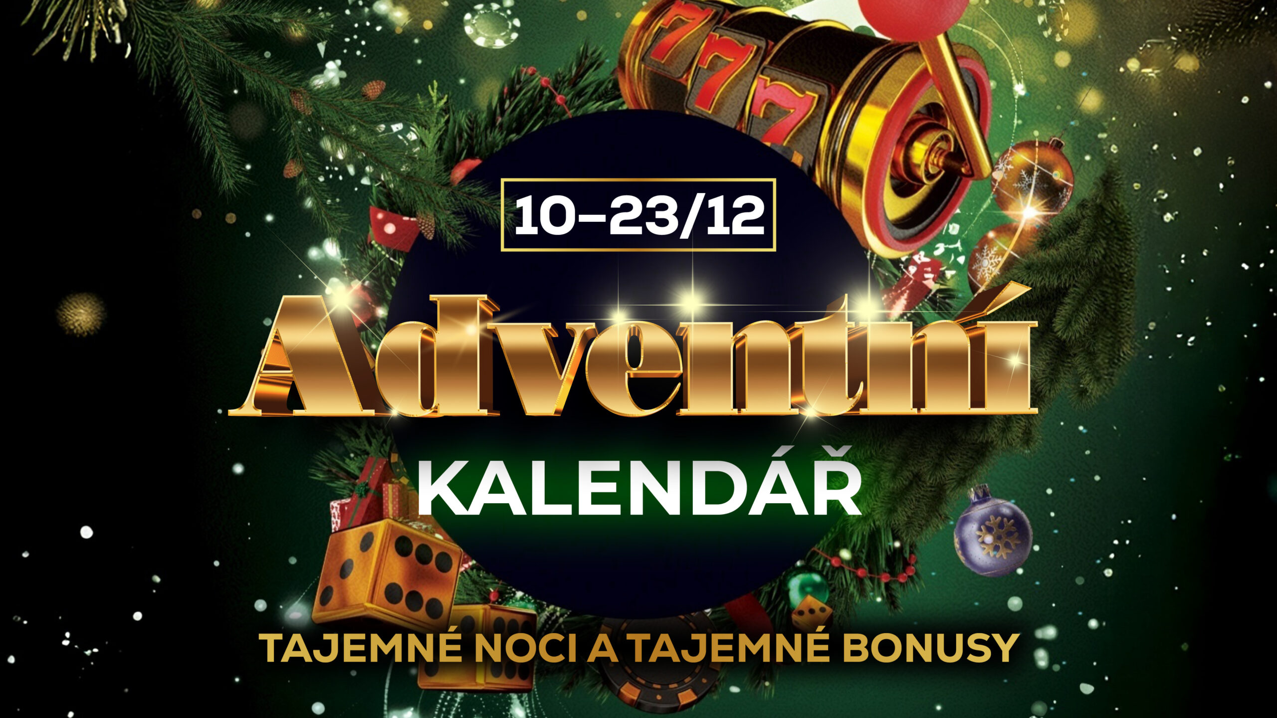 je pro Vás připraven 🎄 ADVENTNÍ KALENDÁŘ 🎄, kde každá noc přinese tajemný bonus. Přijďte si pro své překvapení každý den od 10. do 23. 12. 2025!