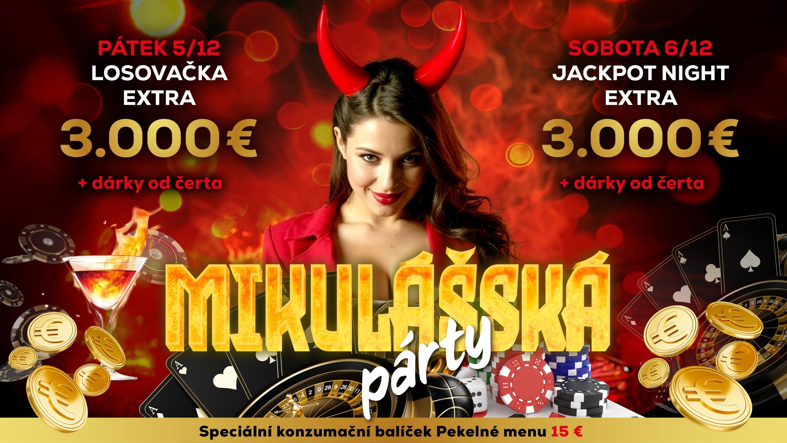 📆 SOBOTA 6. 12. 2025 – MIKULÁŠSKÁ PÁRTY: JACKPOT NIGHTS o 3.000 €