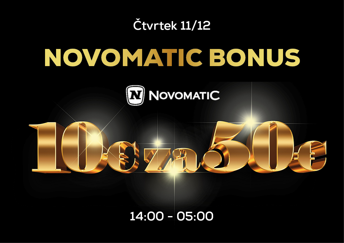 11. 12. – 🎁 NOVOMATIC BONUS – 10 € za 50 €!